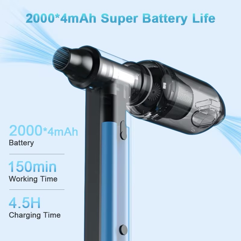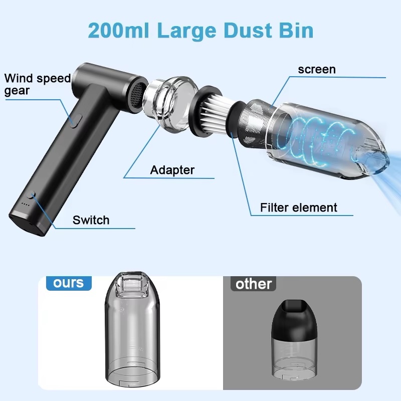 Keep your space spotless with this powerful 160W Cordless Dust Blower. Featuring a massive 6KPA suction/airflow capacity and Type-C fast charging, it easily clears dust from keyboards, electronics, and car interiors. Compact, lightweight (740g), and comes with multiple nozzle attachments for reaching every tight corner. Perfect for home, office, or professional tech cleaning.