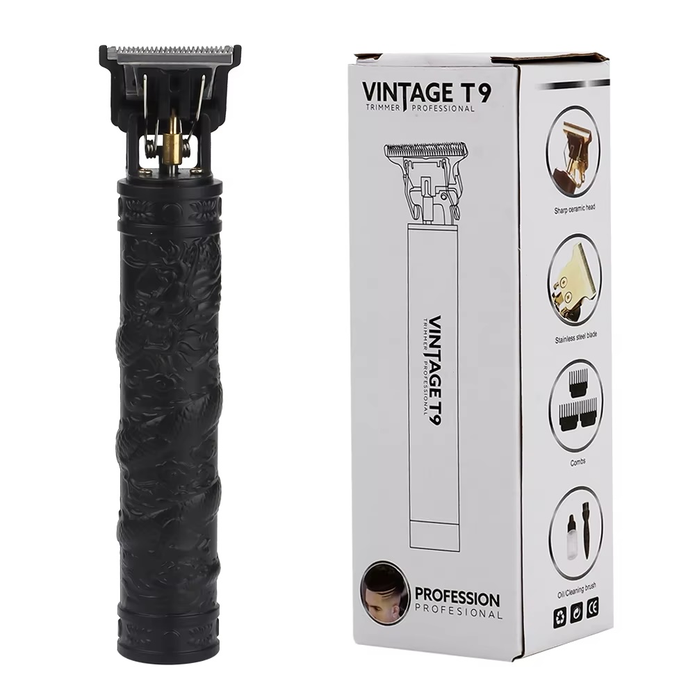 The Vintage T9 is a premium, all-metal professional trimmer designed for precision cutting and stylish grooming. Engineered with a “Zero Distance” oil head design, it features an ultra-short T-type cutter head that allows for skin-close fading, lining, and intricate hair art without irritating the scalp. Its powerful motor and ergonomic aluminum body make it a reliable choice for both home use and professional barbers seeking a classic aesthetic with modern performance.